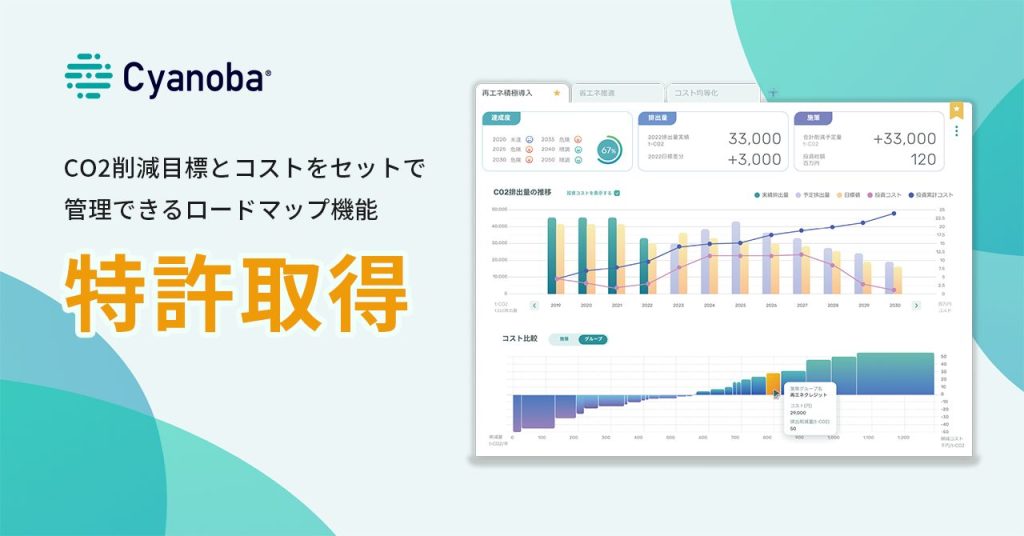 ESGテックの株式会社PID(ピーアイディー/本社:東京都港区、代表取締役:田子 智志、以下 「PID」)は、Cyanoba に搭載する「ロードマップ機能」に関して、以下の通り特許を取得したことをお知らせいたします。この特許は、CO2削減やコスト削減といった目標を「コストとセットで管理」し、施策を組み合わせて最適なロードマップを自動設計できる点に新規性を有するものです。